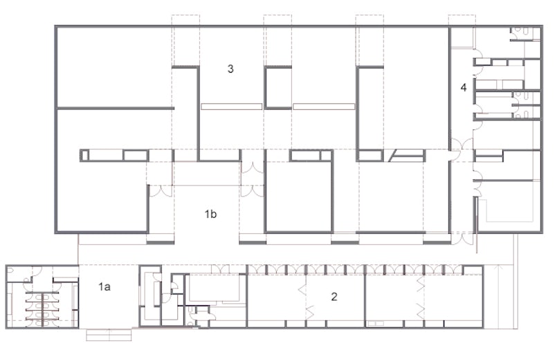 De nieuwbouw is programmatisch te splitsen in vier delen. De bezoekers betreden het gebouw via het ‘antropologische deel’. Dit bouwdeel staat volledig vrij van de rest van het gebouw. In het volume zijn, behalve de entree, ook workshopruimtes en toiletgroepen ondergebracht. De route leidt daarna naar het ‘archeologische deel’ met tentoonstellingsruimten. Het derde programmaonderdeel wordt gevormd door de installatietechnische ruimte. Vaak zijn installaties weggestopt in de meest onooglijke ruimte van het gebouw. Hier heeft de architect ervoor gekozen de installaties te integreren in de exhibitieruimte en te gebruiken als beeldbepalend element. Rechthoekige modules, gedeeltelijk verzonken in het dakvlak, voorzien de ruimte van indirect daglicht, natuurlijke ventilatie en koeling. Ze zijn geplaatst in de overgangsruimtes tussen tentoonstellingszalen. In het vierde en laatste bouwdeel zijn de overige voorzieningen, zoals de personeelsruimte ondergebracht. Deze vleugel grenst aan de tentoonstellingsruimte en is herkenbaar aan de afwijkende verdiepingshoogte.