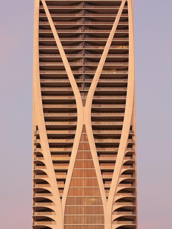 De verticale lijnen van deze woontoren naar ontwerp van Zaha Hadid Architects hebben een ‘verloren’ bekisting van glasvezelversterkt beton. Aan de onderzijde lopen de verticale lijnen uit in een bijzondere vorm, bekijk het project One thousand Museum.