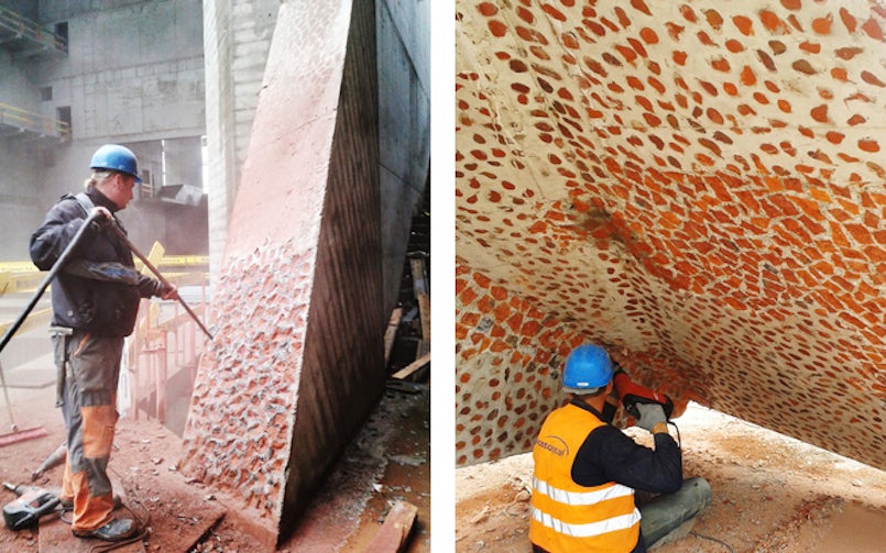 Al twaalf jaar lang doet het architectenbureau onderzoek naar de akoestische eigenschappen van beton. Menis legt uit: “Tijdens het ontwerpen van het Magma Kunst- en Congrescentrum in 2005, ontdekten we dat de plastische eigenschappen van beton gunstig zijn voor toepassingen in concertruimtes. Beton, ‘vloeibaar steen’, neemt de vorm van de bekisting aan. Zo kan de geometrie volledig worden gemanipuleerd en kunnen we de eerste geluiden beïnvloeden die de luisteraar te horen krijgt. De oppervlaktebehandeling van het beton gemengd met bakstenen, gebouchardeerd door middel van pneumatische hamers, geeft een bepaalde mate van diffusie die zeer moeilijk te bereiken is met andere materialen. In de tijd van barokarchitectuur werd deze diffusie bereikt via ornamenten in het decor. Wij krijgen, met onze combinatie van baksteen en beton, dezelfde of zelfs betere akoestische resultaten. We proberen altijd zoveel mogelijk gebruik te maken van lokale materialen. Beton is universeel verkrijgbaar. Daardoor draagt bouwen in beton bij aan de plaatselijke economie en blijven de bouwkosten beperkt. Voor de Picado zijn afgekeurde bakstenen gebruikt van een nabijgelegen Poolse leverancier. Een nieuw leven voor bouwafval als akoestisch bouwmateriaal.”