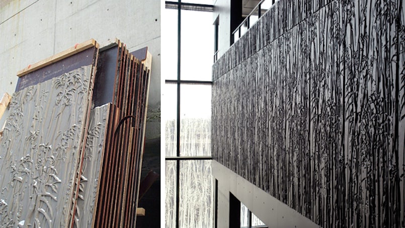 Eén van de bijzondere kwaliteiten van in het werk gestort beton is dat er grote monoliete oppervlakken mee te maken zijn. Door de structuurmatten te verlijmen, kunnen deze oppervlakken van aaneengesloten reliëfstructuren worden voorzien.