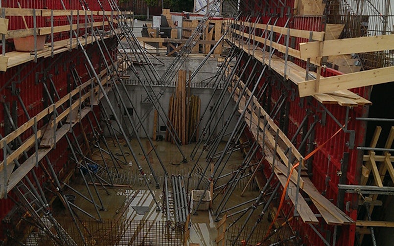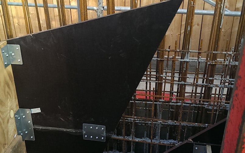 Omdat extreme precisie nodig was voor het maken van de bekisting voor het schoonbeton, heeft de architect autofabrikant Gföllner uit Oostenrijk gevraagd de bekisting te leveren. Het bedrijf heeft een 3D-model omgezet in een betonplex bekisting met houten ribben. Ook het leidingwerk van elektra en vloerverwarming is in de bekisting geïntegreerd.
