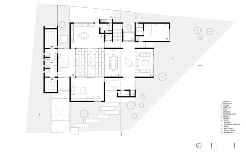 Acolhuas House staat in een woonwijk van de heuvelige stad Guadalajara in Mexico. De naam van de woning verwijst naar de Acolhua; een cultuur verwant aan de Azteken. De vrijstaande villa grenst aan een dichtbebost, openbaar park. De woning is verder omringd door tuinen. Voor het waarborgen van de privacy is de woonruimte daarom gerangschikt rond een patio. De woonfuncties zijn verdeeld over verscheidene rechthoekige volumes die verspringen in hoogte. Ze zijn afgestemd op het uitzicht van buren en op het verhullen van een massieve wand van het pand ernaast. Alle ruimten bieden uitzicht op de tuin of op de centrale patio. Een ereplaats in de woning is gemaakt voor de Bösendorfer-vleugel. Het instrument, overkoepeld door metselwerk gewelven, staat in het midden van de woning en definieert de formele zitkamer en eetruimte aan weerszijden.