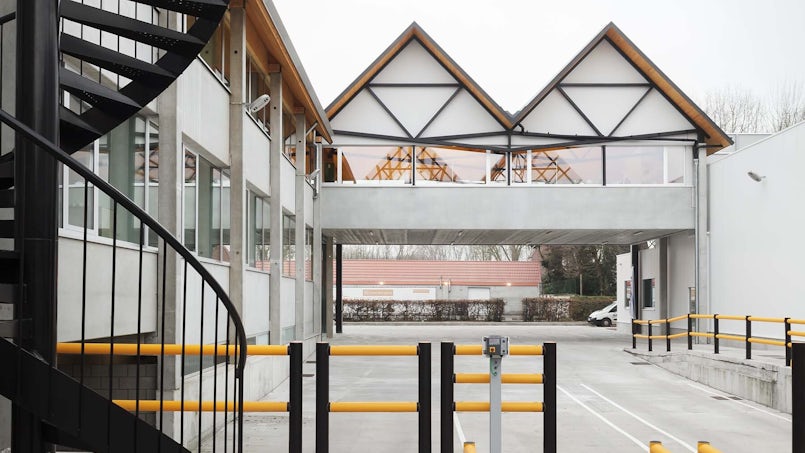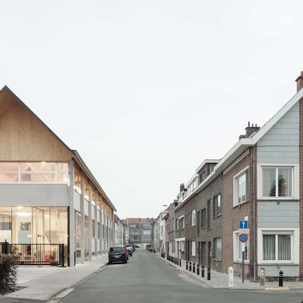 Is het een huis of een fabriek? Van een afstandje lees je de functie van Ryhove niet direct af. En dat is precies wat architect Bram Aerts voor ogen had. Het duurzame ontwerp voor dit bijzondere bedrijf midden in een Gentse woonwijk is bovendien atypisch: de betonnen prefab kolommen zitten aan de buitenzijde. Constructie en gevel vormen één geheel.