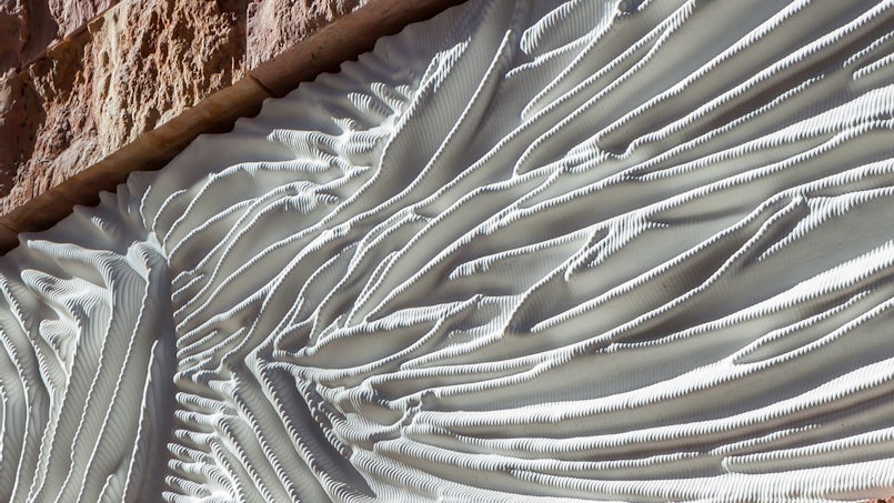De reliëfstructuur van het fries van Naturalis is zo ontwikkeld dat het beton goed in alle hoeken van de mail vloeit