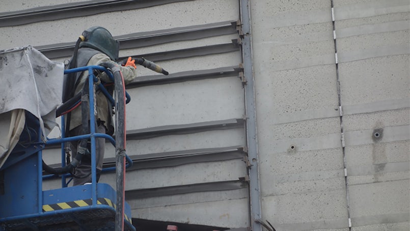 Tien mensen werkten vijf maanden op locatie aan het spiegelglad polijsten van de gevel van het kunstmuseum Liechtenstein, ontwerp van Degelo architecten.