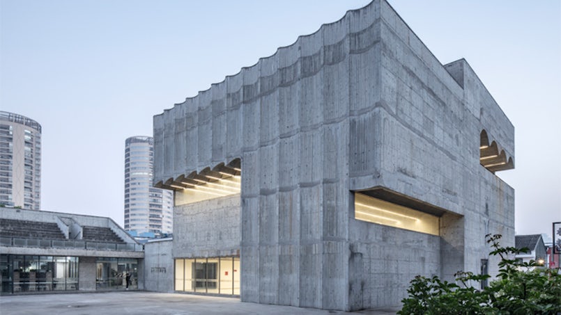 Atelier Deshaus gebruikte de ruwe kunde van de plaatselijke betonwerkers om het Taizhou Contemporary Art Museum in Taizhou, China zijn robuuste karakter te geven.