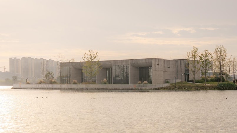 In 2017 werd MORE Architecture door een Chinese projectontwikkelaar gevraagd om een museum van 2500 m2 te bouwen op een eilandje in een – kunstmatig aangelegd – meertje, als onderdeel van een grotere gebiedsontwikkeling. “De opdrachtgever vroeg om een iconisch gebouw”, zegt architect Daan Roggeveen. “Maar in reactie op de ‘museumgekte’ die sinds 2010 gaande was in China, waarbij talloze spektakelgebouwen verrezen, leek het mij interessanter om een eenvoudig gebouw te maken, passend bij de natuurlijke omgeving. De vraag daarbij was: hoe kunnen we het zo simpel mogelijk materialiseren, waarbij draagstructuur en ruimtelijke organisatie samenvallen met het materiaal? In het werk gestort beton bleek hiervoor de perfecte oplossing.”