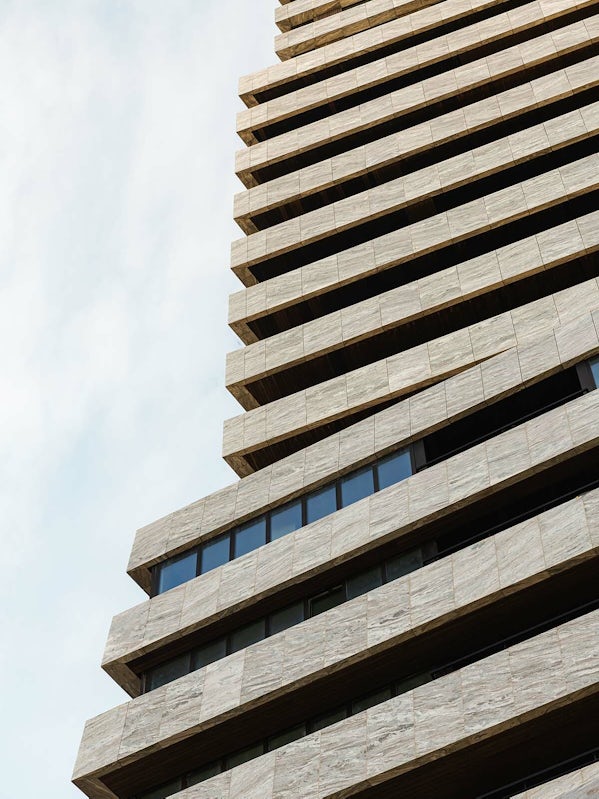 Het ontwerp voor de brutalistische bunker is van Huib Maaskant. “Met het ontwerp voor de woontoren wilde ik aansluiten bij het originele ontwerp van Maaskant,” aldus De Ru. “Ik wilde er, met respect voor Maaskant, wel mijn eigen draai aan geven.” In de woontoren zijn daarom de architecturale thema’s herhaald: schuine muren, sterke horizontale lijnen, strakke details en stoere materialen. Zo vormen brutalistisch en modern een nieuw geheel. “Maaskant is een bijzondere architect, die grote gebouwen heeft gemaakt zoals de Euromast, het Groot Handelsgebouw en de Hilton hotels in Amsterdam en Rotterdam. Tijdens het proces heb ik meermaals gedacht: ‘wat zou Maaskant ervan vinden?’ Ik denk dat hij dit wel vet had gevonden, om een toren in de bunker te zetten.”