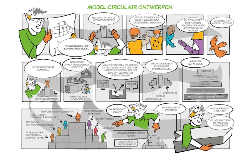Het Uitvoeringsteam Circulair Ontwerpen binnen het Betonakkoord heeft het Bouwwaardemodel Circulair Ontwerpen ontwikkeld door verschillende circulaire modellen ineen te voegen (het 10R model, Value Hill, Ellen MacArthur en model RWS). Immers, de uitgangspunten zijn vergelijkbaar met verschillende bewoording en soms een andere focus. Door het ineenvoegen van deze circulaire modellen ontstaat een compact beeld, dat in nauwe afstemming met het Opdrachtgeversforum tot stand is gekomen.