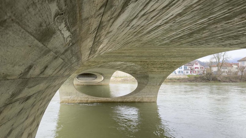 Elegante brug met zo min mogelijk materiaal, zie ook elders op deze site - Aare Bridge, Aare CH - Christ & Gantenbein 2023 (foto: bureaubakker)