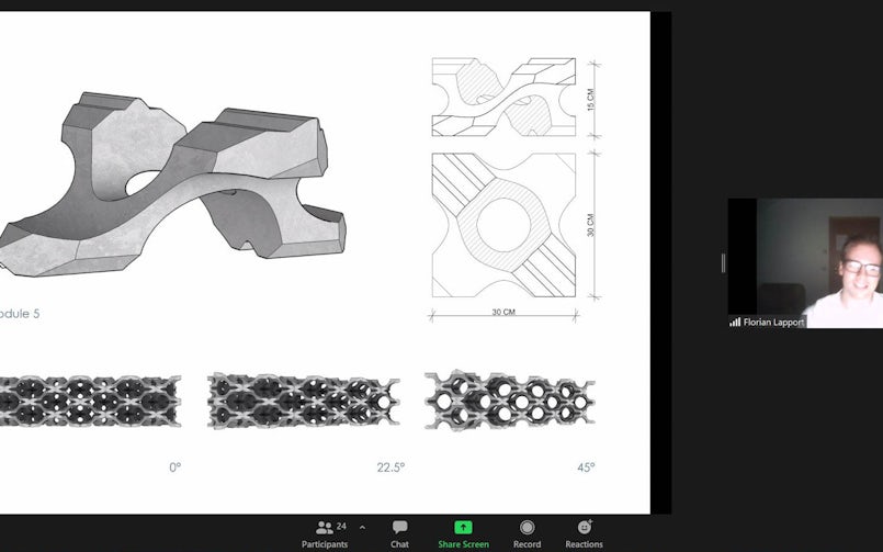 Traditioneel gaan de winnaars van de Concrete Design Competition samen met de winnaars van de andere participerende landen een week geheel verzorgd naar een internationale Concrete Design Masterclass. De Masterclass voor de winnaars van de 9e editie 2019-2020 kon vanwege te hoog coronarisico in 2020 niet doorgaan en werd doorgeschoven naar de zomer van 2021. In mei 2021, toen de reservering bevestigd moest worden, was het nog onduidelijk of een fysieke Masterclass verantwoord was. Toen heeft Siebe Bakker van bureaubakker, die de Masterclass verzorgt, heel snel een online programma in elkaar gezet met een aantal interessante keynote presentaties. Deze sprekers gaven de studenten ook feedback op hun ontwerpen. Een impressie van de presentaties is beschikbaar.