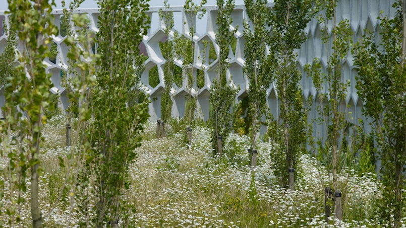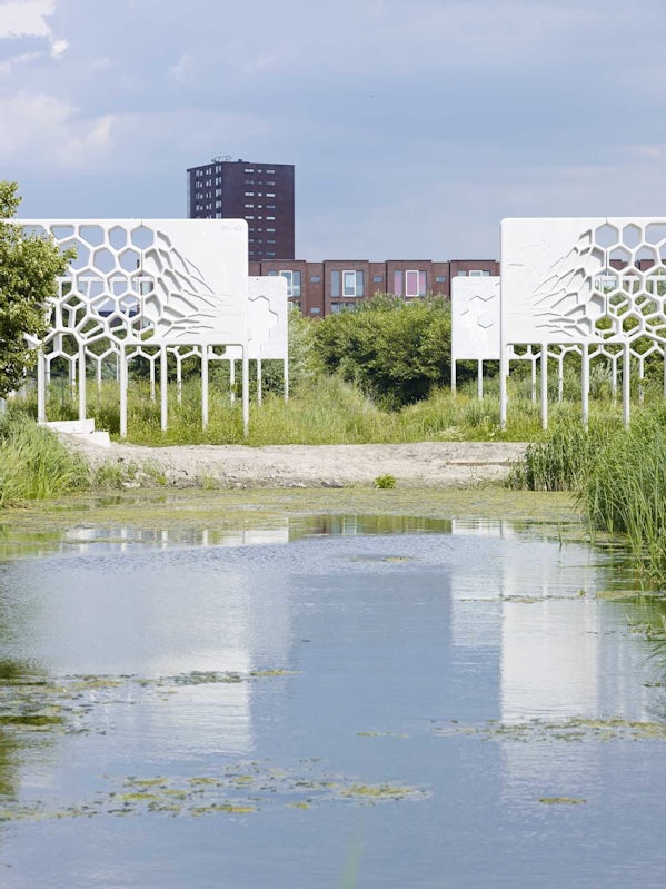 Introfoto: De zeshoekige structuur van de schermen wordt met verschillende elementen ingevuld voor extra stimuleren van de biodiversiteit (foto: Jeroen Musch)