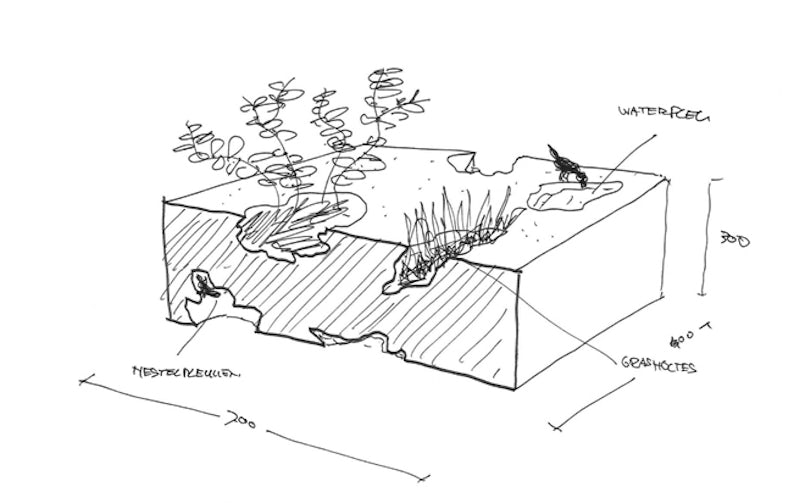 Hittestress, wateroverlast, een verlies aan biodiversiteit: problemen waarvoor natuurinclusief bouwen een oplossing biedt. Geen wonder dat opdrachtgevers dit steeds vaker meenemen in hun programma van eisen. DP6 architectuurstudio uit Delft zoekt in haar ontwerpen naar mogelijkheden voor transformatie van de versteende omgeving naar een natuurinclusieve wereld. En samen met Experimenteel Beton ontwikkelde DP6 acht samples waarin beton als bouwmateriaal een voedingsbodem en verblijfsplek kan zijn voor dieren, bomen en planten.