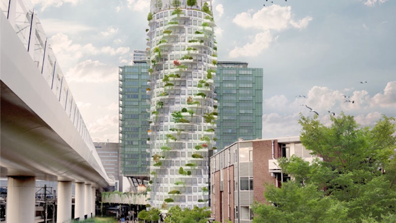 Als testcase koos DP6 Witte Anna. Ze maakten een ontwerp waarbij elke woning een balkon krijgt met tuin, waarop verschillende boom- en plantsoorten zouden kunnen groeien. De balkons in het ontwerp zijn voorzien van nestkasten voor huismus, gierzwaluw en dwergvleermuis. Vanwege de seriematigheid van de balkons, zouden deze kunnen worden uitgevoerd in ultrahogesterktebeton. De balkons kunnen daardoor, ondanks het gewicht van het ‘tuinpakket’, relatief dun en licht zijn en worden opgehangen aan de (dragende) woning scheidende wanden. De balkons verschuiven per laag één raambreedte, zodat er een spiraalvormige beweging rondom de toren ontstaat en de bomen de ruimte hebben om te groeien.