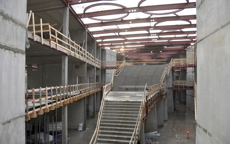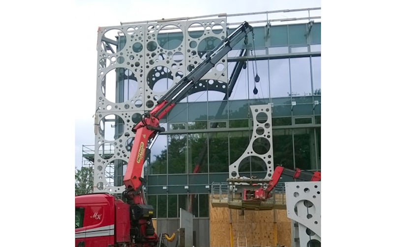 CRC i2® is hier om meerdere redenen gekozen. De extreme sterkte is belangrijk om de geperforeerde elementen te kunnen storten zonder kans op breuken. Het geperforeerde deel beslaat 65% van het gevelelement. Door de versterking met staalvezels ontstaat geen barstvorming, wat belangrijk is om gebogen vormen te kunnen maken. De traditionele wapening geeft de constructie zijn draagkracht. Door de toevoeging van al dat staal heeft het materiaal een hoge dichtheid en is het relatief zwaar, maar doordat de platen slechts 65 mm dik zijn en veel – grote – openingen omvatten, is de gevel relatief licht. De panelen zijn met roestvaststalen beugels bevestigd aan de vliesgevel.