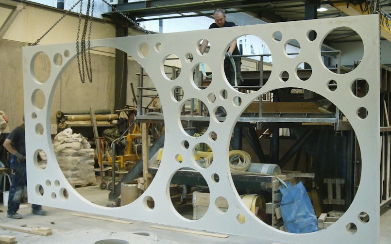 Praktisch was de uitdaging om het beeld van bellenblaasschuim, waarbij de ronde gaten ogenschijnlijk op willekeurige plekken zitten, te maken met zo min mogelijk verschillende panelen. De mallen zijn immers het kostbaarste onderdeel bij de ontwikkeling van de gevel. Daarom is het ontwerp erop gericht om met zo min mogelijk mallen een zo gevarieerd mogelijk gevelbeeld te creëren, onder andere door panelen te spiegelen. Zo werd het project financieel haalbaar. De houten mallen zijn met de hand vervaardigd. Uiteindelijk zijn daarmee zeven paneelvarianten gemaakt voor de hele gevel.