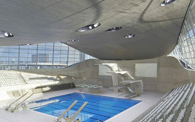 Het Olympische Aquatics Centre Londen wordt aangepast voor een lange toekomst als iconisch zwemsportcomplex. In een langdurig ontwerpproces – dat al begon voordat was besloten dat Londen de Olympische Spelen van 2012 zou mogen organiseren – werd van het druppelvormige Aquatics Centre van Zaha Hadid Architects zowel een tijdelijke als een permanente versie gemaakt. Voor de duur van het grote sportevenement kreeg het gebouw extra tribunes en faciliteiten. Op de nadrukkelijke wens van de opdrachtgever werden alle beslissingen over materialisering en dimensionering langs een strenge milieulat gelegd.