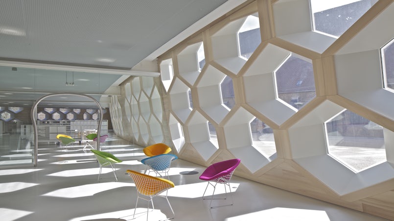 De architect koos voor hexagonale kozijnen, omdat ze geen hiërarchie in de gevel wilden maken (foto: Philippe Ruault)