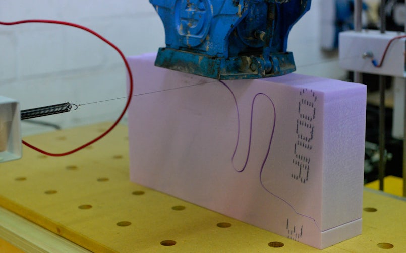 Er stond een 3D betonprinter waar de medewerkers nog mee aan het experimenteren waren. Elke combinatie van spuitmond, betonpomp en betonmengsel geeft andere mogelijkheden en dient nauwkeuring op elkaar afgestemd te worden. Het is dan ontdekken hoe lang het pad van één laag kan zijn, wat de beste hoogte van een laag is en hoever de lagen verschoven van elkaar kunnen liggen voordat de helling instort. De manier van denken van de studenten – niet gehinderd door betonkennis – leverde mooie tests op, waar ook de laboratorium medewerkers energie van kregen.