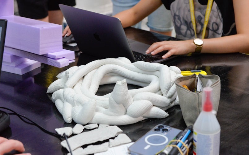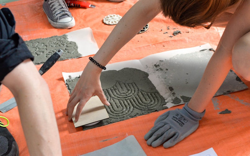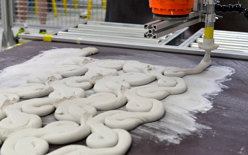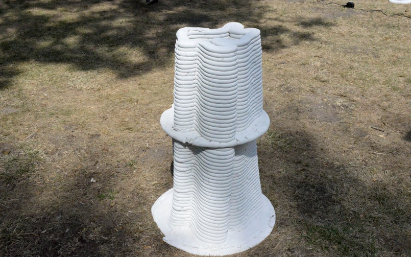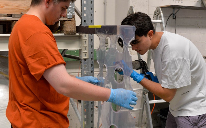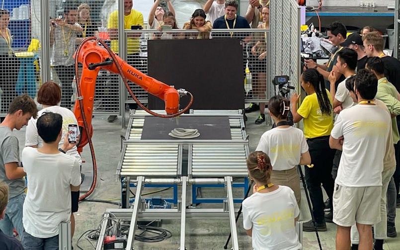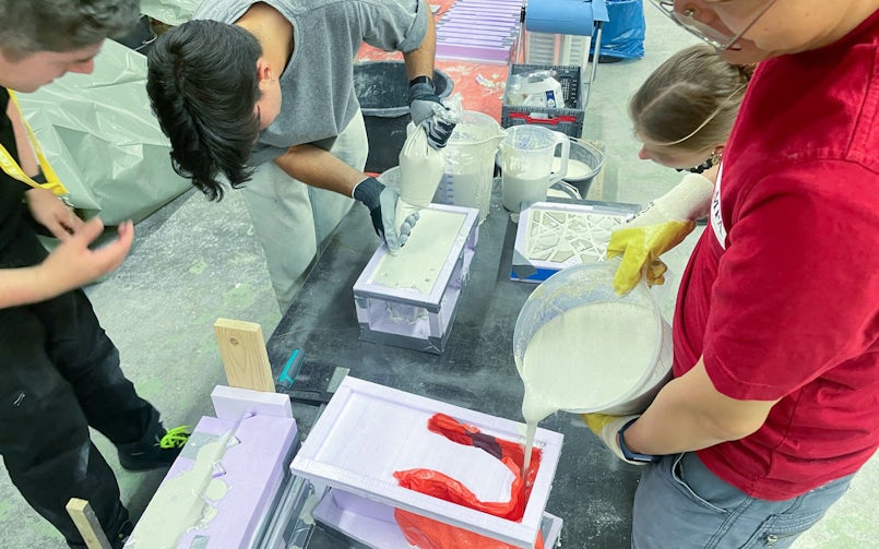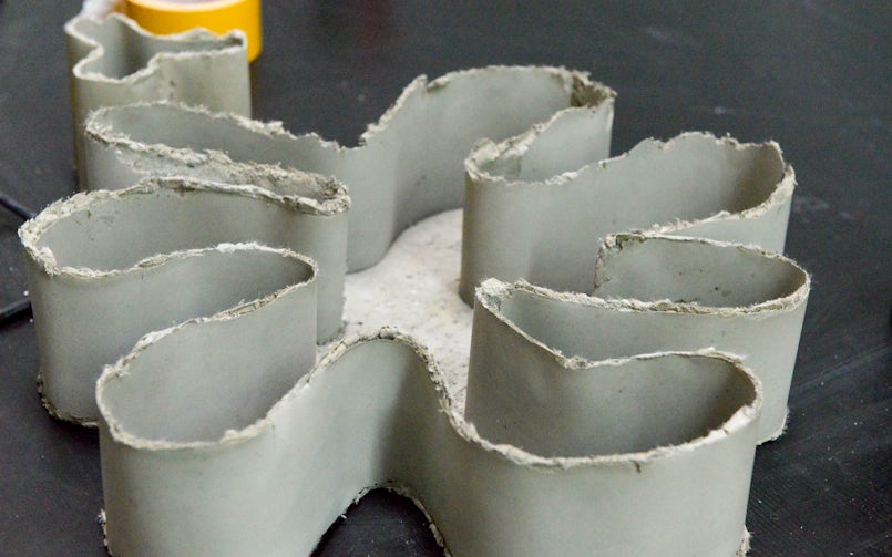 Studenten winnaars van de Concrete Design Competition maakten ontwerpen voor de 3D-betonprinter èn maakten objecten met textiele mallen.