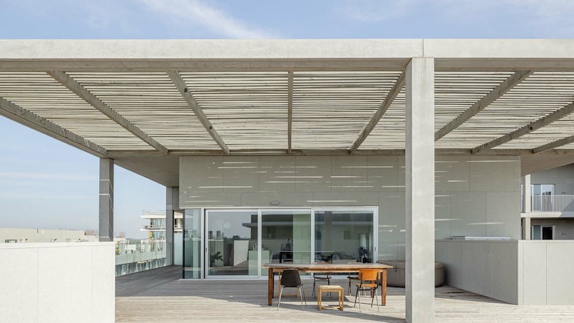 In België beleefden ze een coming out wat betreft beton. “In Nederland werd schoon beton direct wegbezuinigd, maar in België was er wel budget voor. Elk land heeft zijn eigen cultuur en mentaliteit en dat is in de bouwwereld niet anders. In Nederland kiest men vaak voor grote glazen puien. Vanwege de kosten voor het glas blijft er doorgaans weinig geld over. In Nederlandse ontwerpen kiest men daarom vaker voor een aluminium strip tussen de ramen. In België kun je wel een gevel in schoon beton ontwerpen.”