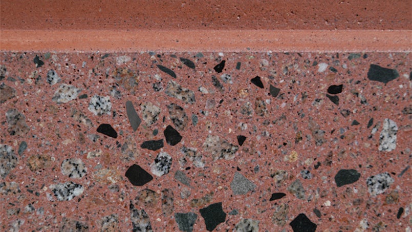 Door bewerking van het oppervlak wordt de cementhuid geheel of gedeeltelijk verwijderd. Hierdoor wordt het gladde, gebroken en/of kristallijnen natuursteen zoals kwarts, graniet, porfier, basalt en kalksteen zichtbaar. De kleur wordt voornamelijk bepaald door het natuursteen dat aan het oppervlak zichtbaar is in de vorm van ronde en/of gebroken korrels van uiteenlopende grootte. De natuursteensoorten worden op kleur gesorteerd. Voorzichtigheid is geboden met niet wit gekleurde stenen en marmers, omdat deze niet altijd kleurvast zijn. Met name bij egale, bewerkte oppervlakken is het van belang om grondstoffen zorgvuldig op kleur te selecteren voor het verkrijgen van een gelijkmatige textuur van het oppervlak.