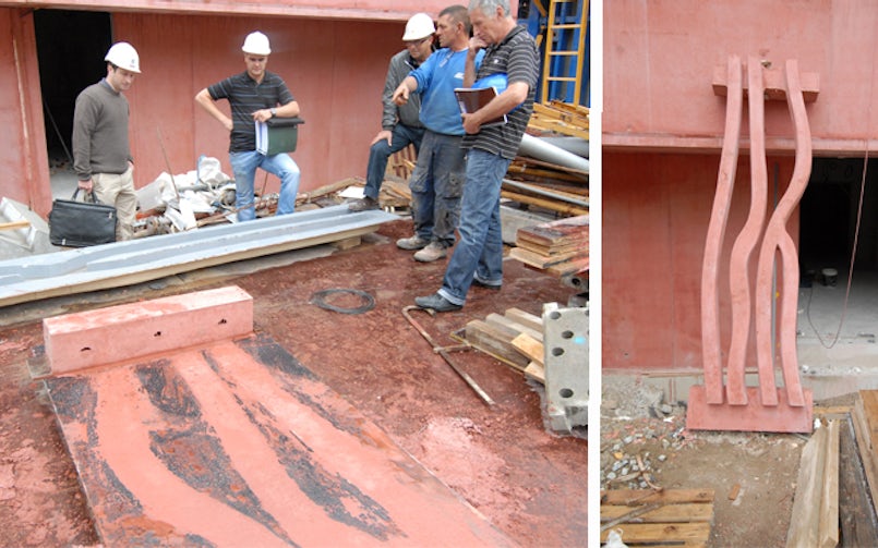 Het ontwerp van het betonraster is gebaseerd op hoornkoralen. Vanuit prototypes volgden tien basisvormen, waarvan houten dummy’s zijn gemaakt. Een plaatselijke scheepsbouwer heeft van deze contramallen twintig glasvezel mallen gemaakt, van iedere vorm ook het spiegelbeeld. Alle gevelelementen zijn op de bouwplaats gestort. Iedere betonnen streng is 110 mm dik en bevat een centraal geplaatste staaf wapeningsstaal. De strengen zijn steeds in andere volgorde gecombineerd, zodat een afwisselend gevelpatroon is verkregen.