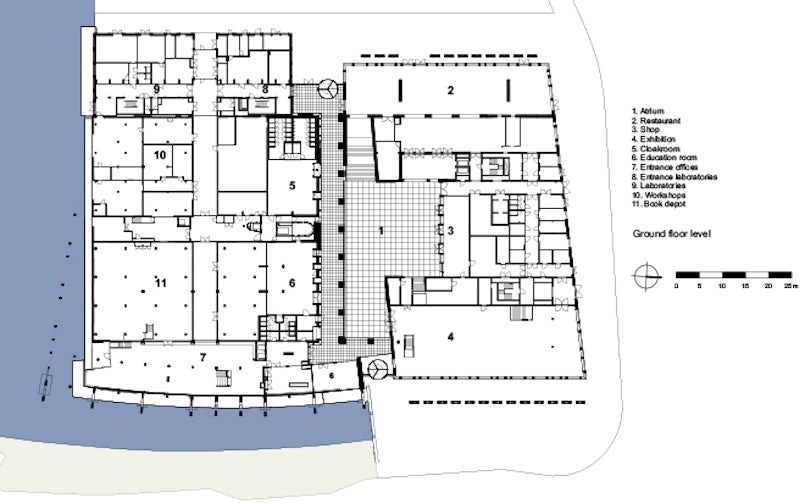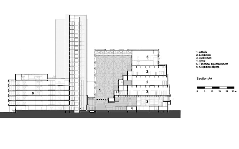 In het ontwerp is het bestaande blok met depottoren van 62 m en museumzalen geheel bestemd voor depots en kan zo goed gescheiden worden gehouden van de publieke gedeeltes. De oude museumzalen waren 8,6 m hoog en zijn voor de depotfunctie voorzien van tussenvloeren. In het nieuwe ontwerp wordt het gebouw ontsloten vanuit de centrale hal, die in de plattegrond een ‘leeg’ vierkant is, gespiegeld aan het blok met depots. Tussen deze twee vierkanten loopt een openbare route door het gebouw heen.