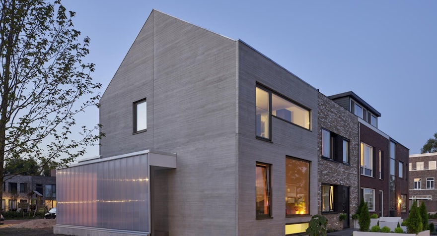 “Het samenspel tussen het harde en verfijnde, mede door de hoge kwaliteit en het plankenpatroon van het beton, is goed gelukt. Als men bij de woning is wil men de gevel aanraken,” licht David Windt toe. “Het translucente deel van de gevel doorbreekt het wat meer gesloten karakter van het beton, van binnen zorgt het voor een rustig licht wat binnenkomt. Vooral aan de binnenkant draagt dit bij aan die museale kwaliteit.”