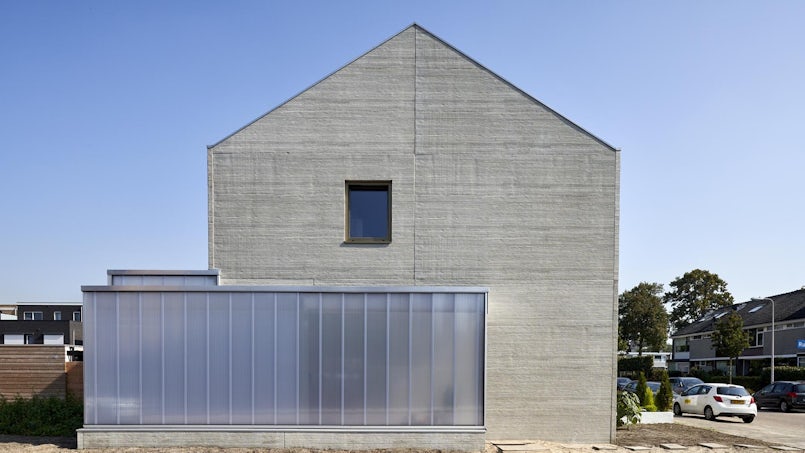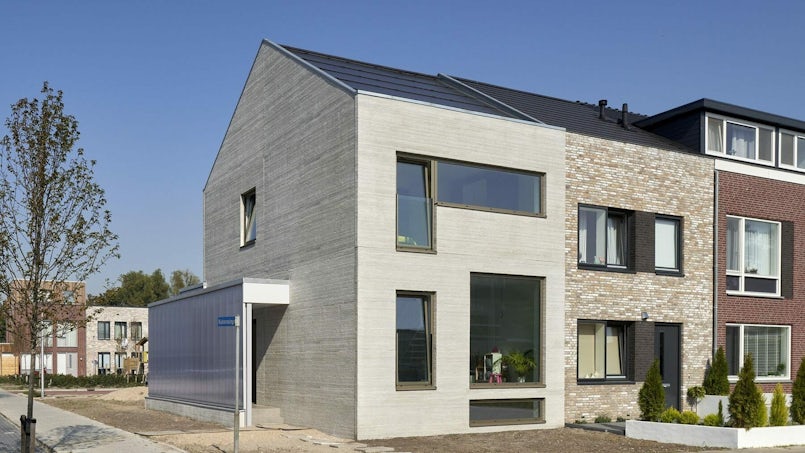 In het ontwerp is het heel lang het idee geweest het zo uit te voeren. Maar bij de aanbesteding was er geen aannemer te vinden die het wilde bouwen en wilde garanderen. Waarschijnlijk wel als het project een paar ton meer mag kosten, maar hier hebben we het juist over een heel normaal budget en een redelijk standaard type woning. In Zwitserland bouwen ze juist ook zo als het niet teveel mag kosten, maar het lukte hier niet.