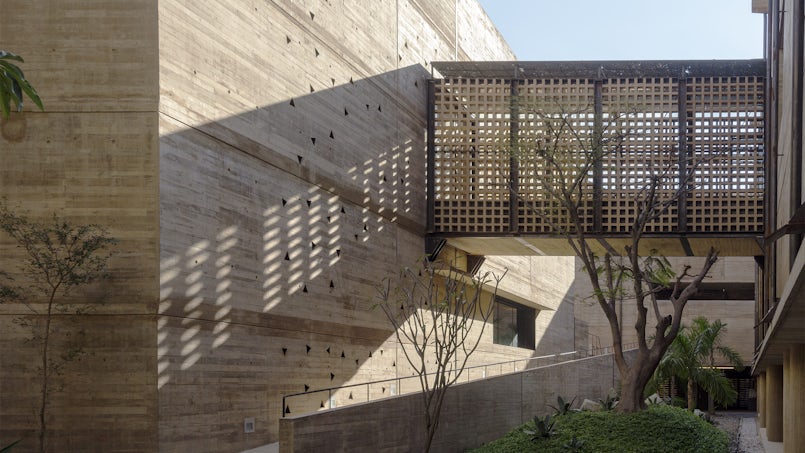 De locatie heeft een solide rotsbodem, daarom is het gebouw gefundeerd op staal. De draagconstructie bestaat uit betonnen wanden van 400 mm dik met forse betonnen balken voorzien van traditioneel wapeningsstaal. Omdat Oaxaca veel te verduren heeft gehad van aardbevingen, zijn in de balken ook stalen platen opgenomen om de seismische belasting op te vangen. De grote hoeveelheid wapeningsstaal benodigd voor de wanden, leidde tot de keuze voor zelfverdichtend beton. Waar mogelijk, is het gewicht van de constructie beperkt, door het plaatsen van harde isolatieplaten in het midden van de wanden. De samenstelling van het betonmengsel is verder opgebouwd uit natuurlijke pigmenten, lokale toeslagmaterialen en grijs en wit portlandcement.