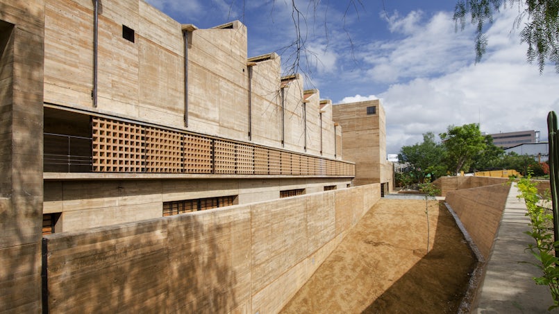 Het historisch archief van de staat Oaxaca in Mexico is samengebracht in één gebouw, opgebouwd uit okergekleurd beton. Binnen wisselen statige, hoge ruimten en besloten tuinen elkaar af. Een veranderlijk lijnenspel van slagschaduwen siert de horizontaal gelede, betonnen wanden. Behalve de geconserveerde documenten in het archief, is ook de locatie van het gebouw van historische waarde.