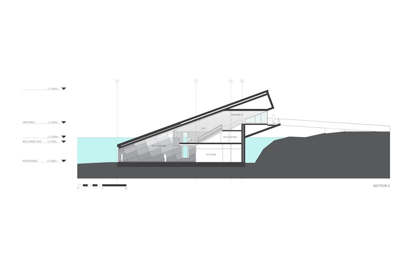 Het bouwvolume is 34 m lang en 15 m hoog en wordt door architectenbureau Snøhetta vergeleken met een gezonken periscoop. Omdat de entree 3 m boven de zeespiegel ligt en de eetzaal 5 m eronder, is het gehele volume ongeveer 20 graden gekanteld. De betonnen schaal kan grote druk en schokken in de branding weerstaan. De constructie is berekend op onder meer golfbelasting, ijskrachten, getijden, sneeuw, wind en grote temperatuurschommelingen in FEM-design. De golfbelasting was maatgevend voor de constructie. De ronde randen van het gebouw komen voort uit deze berekeningen. Ze zorgen ervoor dat de golven in twee richtingen breken.