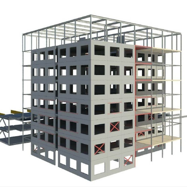 Bij het verwijderen van de gevelelementen zijn de stekeinden die de elementen aan de vloer verbonden, doorgezaagd. Er wordt bekeken in hoeverre de oude voorziening, inclusief de hijsvoorziening, weer vrijgemaakt kan worden. Het koppelen van prefab dragende elementen middels stekken en gains is gebruikelijk. Onderzoek of deze bij hergebruik kunnen worden toegepast is evident voor het opschalen. Daarnaast zal er ook onderzocht worden of er een nieuwe manier van koppelen mogelijk is die later ook weer te demonteren is. Hierbij wordt gekeken naar het koppelen van de dragende binnenspouwbladen onderling, maar ook de koppeling van de kanaalplaten rekening houden met de schijfwerking van de vloer. Kortom: work in progress.