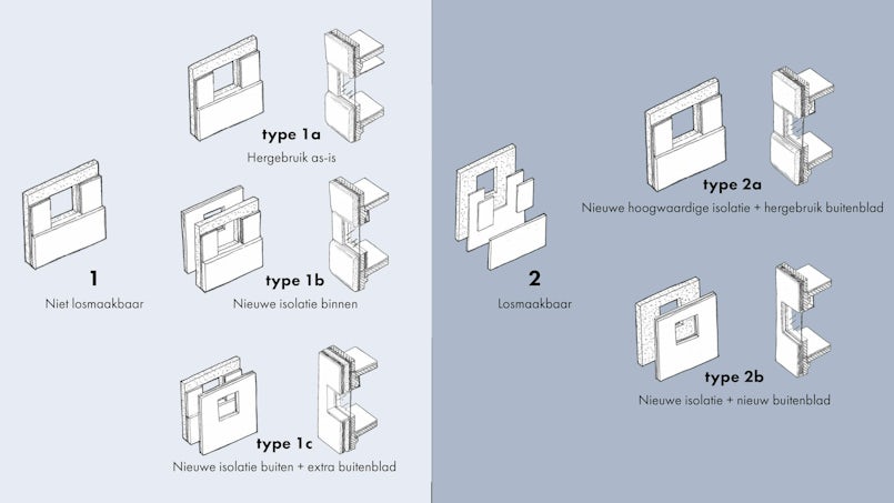 De her te gebruiken gevelelementen moeten dus ook aan de huidige energie-eisen voldoen. Het integrale ontwerpteam heeft onderzocht of de gevelelementen als geheel voorzien moeten worden van extra isolatie aan binnen- of buitenzijde, of dat het binnen- en buitenspouwblad losgehaald en apart geïsoleerd moet worden voor twee verschillende toe te passen elementen. In al de varianten is de energiewinst afgewogen tegen de extra werkzaamheden en materialen die in het product gaan om het weer te laten voldoen. Hiervoor heeft Lagemaat onderzocht of het verwijderen van buitenspouwblad mogelijk is en daarbij gescheiden bouwmaterialen kan opleveren die weer de bouwketen terug in kunnen.