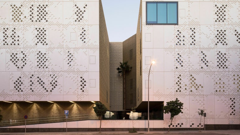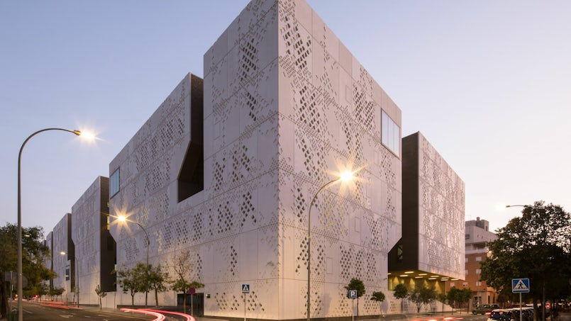 Toen Mecanoo in 2006 de ontwerpprijsvraag voor het Paleis van Justitie in Córdoba won, was glasvezelversterkt beton (GFRC) nog geen gangbaar materiaal, al werd er in ‘betonland’ Spanje al wel mee geëxperimenteerd. Samen met betonproducent Prehorquisa ontwikkelden de architecten prachtige geperforeerde gevelpanelen, geïnspireerd door de lokale Moorse architectuur.