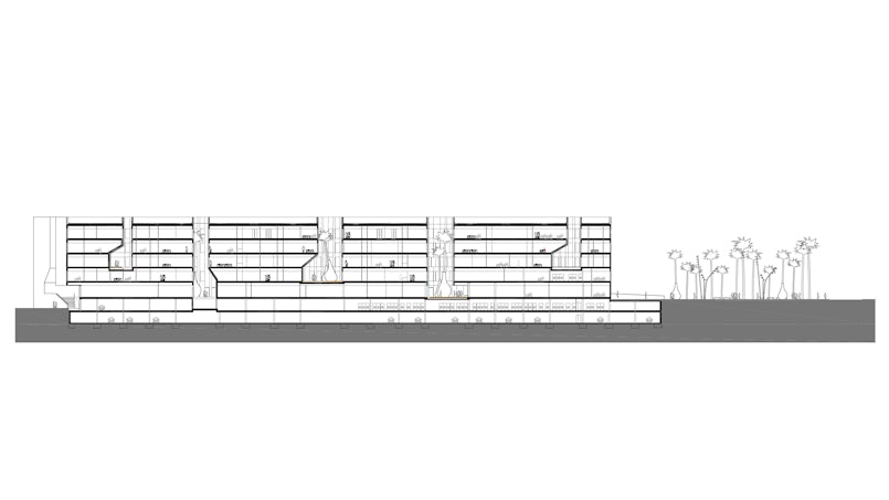 Langsdoorsnede Paleis van Justitie (bron: Mecanoo)