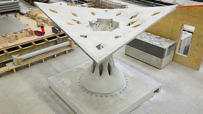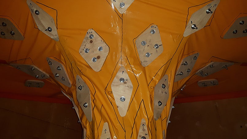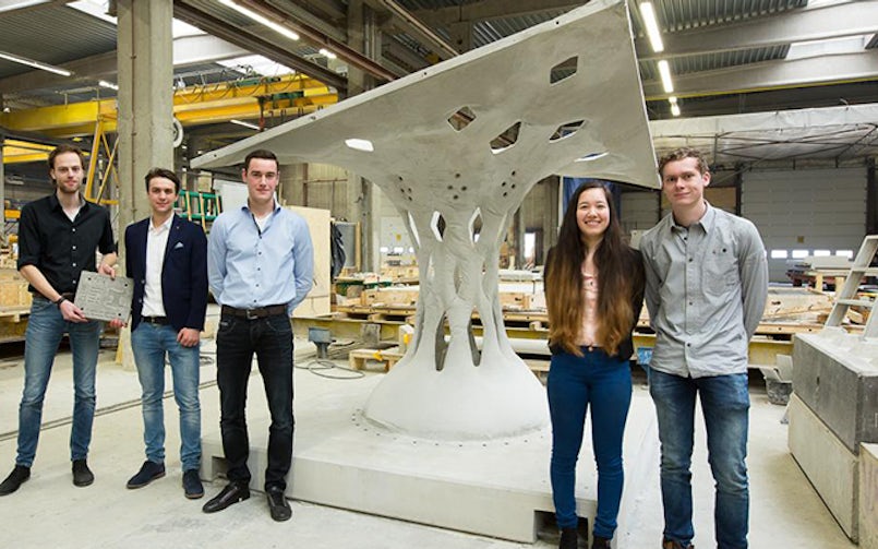 Ook aan de TU Eindhoven is inmiddels de nodige expertise opgebouwd met fabric formwork. In het vervolg van dit artikel wordt het Fabric formwork-project beschreven, waaraan één van de twee groepen studenten Structural Design, onder leiding van docenten Arno Pronk en Arjan Habraken, in het academisch jaar 2015-16 hebben gewerkt. De studenten in deze groep zijn: Gido Dielemans, Lia de Mooij, Pavlo Kuzin, Robbert de Smet en Tom Godthelp. Dit project is opgeknipt in twee fasen (verdeeld over twee studieblokken), die beide zijn afgesloten met de daadwerkelijke realisatie van een betonnen object. Het finale prototype is gerealiseerd in de fabriek van Geelen Beton in Wanssum. Verderop in dit artikel wordt deze 2,4 m hoge, elegant gevormde betonkolom nader beschreven.