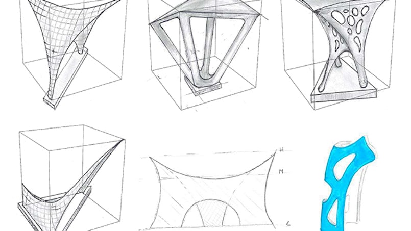 Het ontwerp voor het finale, boomvormige, prototype – gedurende het project omgedoopt tot Organica Hyparbolica – kenmerkt zich door een hyperbolische kolom die de ondersteuning vormt voor een hyparschaal. Om de constructie zo efficiënt mogelijk te maken, is zoveel mogelijk gewicht bespaard. Het ontwerp is parametrisch bepaald: het is 3D gemodelleerd in Rhinoceros in combinatie met Grasshopper en de plug-in Kangaroo Physics voor het simuleren van het elastisch gedrag van het textiel. Door te variëren in geometrie, positie van de vaste punten (anchorpoints), trekkracht en stijfheid van het textiel, kon de uiteindelijke, optimale vorm van het fabric formwork worden bepaald. De te verwachten rek van het textiel door toedoen van de stortdruk, is vooraf bepaald op basis van materiaalproeven. In het ontwerp is hiermee rekening gehouden. Zowel in de kolom als schaal is de doorsnede van de constructie zo slank mogelijk gehouden en voorzien van openingen. De posities daarvan zijn eveneens parametrisch bepaald. Tussen de openingen is het fabric formwork in diagonale ‘kanalen’ vormgegeven. Deze lopen over het oppervlak van het object in twee, elkaar kruisende richtingen (soort netkous). Om er zeker van te zijn dat het beton bij het gieten de hele textielmal zou vullen, moesten de kanalen een zekere minimale doorsnede hebben. De openingen zijn gemaakt door de twee lagen textiel, waartussen het beton is gestort, tegen elkaar te klemmen met behulp van multiplex plaatjes in de vorm van de sparingen. De textielmal is opgebouwd uit verschillende snijpatronen van PVC-gecoat polyester. Dit materiaal heeft een hoge treksterkte en een relatief laag smeltpunt. Hiervoor was gekozen, zodat de snijpatronen aan elkaar konden worden gelast met een heteluchtpistool.
