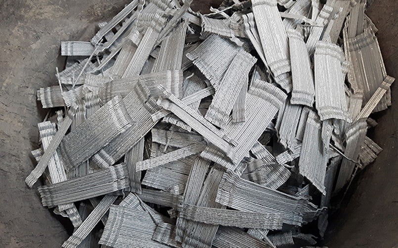 Aan het beton is 35 kg/m3 staalvezelwapening toegevoegd. Hierdoor krijgt het beton een nascheurtreksterkte en kunnen relatief kleine momenten worden opgenomen. Dit was bij het ontwerp noodzakelijk, aangezien er trekkrachten optreden in de constructie. Er is gekozen voor het type staalvezel Dramix 5D 65/60 GG. Daarbij staat de ‘codering’ voor: vezels met een lengte/dikte-verhouding van 65, een lengte van 60 mm, die thermisch verzinkt (galvanized) zijn om roestvorming te voorkomen en die als nietjes zijn verlijmd (glued). Dit verlijmen wordt gedaan om klitvorming van de vezels in de verpakking te voorkomen. De lijm is oplosbaar in water (tijdens het mengen). Om klitvorming van de vezels tijdens het verwerken van het betonmengsel te voorkomen, was het noodzakelijk een zekere minimale doorsnede van het beton aan te houden. Aan het betonoppervlak worden de staalvezels bedekt door een hele dunne cementlaag, waardoor ze niet meer zichtbaar of voelbaar zijn. Dat is verrassend in positieve zin en wellicht ook deels te verklaren doordat op veel plekken later handmatig met een cementpasta is ‘gestuukt’ om de minder fraaie plekken te herstellen. Alleen ter plaatse van de stortnaad tussen de boom en het voetstuk is traditionele wapening toegepast, zodat de daar optredende krimp en buigende momenten effectief worden opgevangen.