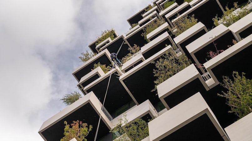 De Trudo Toren in de Eindhovense wijk Strijp-S is de eerste echte ‘bosflat’ in Nederland. De befaamde Milanese architect Stefano Boeri realiseerde elders in de wereld wel meer Bosci Verticale, maar nog nooit voor de sociale huursector. “Door de plantenbakken en een groot gedeelte van het gebouw in prefab beton uit te voeren, werd dit haalbaar”, legt Bart van Berlo (projectmanager INBO) uit. Zijn bureau vertaalde als uitvoerend architect het esthetisch ontwerp van Boeri naar een uitvoerbaar plan.