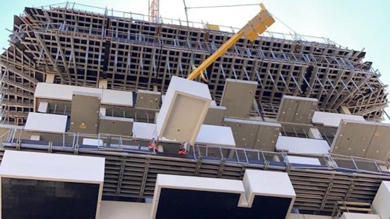 Door die hoge mate van prefabricage kon er vanaf de vrachtwagen worden gemonteerd. “Zo hebben we ook de wens van de aannemer om steigerloos te kunnen bouwen ingewilligd. Deze aanpak is een hele belangrijke move geweest voor de haalbaarheid van de toren; zowel qua uitvoering en planning als financieel.”