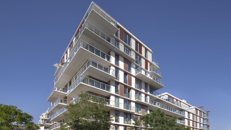 “Het stedenbouwkundig grid van die wijk schrijft voor dat de gevel na vijf verdiepingen trapsgewijs terug moet wijken, op een aantal specifieke plekken in het gebied na. The Row is zo’n uitzondering vanwege de positionering naast een parkje”, licht Robert Alewijnse (architect partner DP6 architectuurstudio) toe.