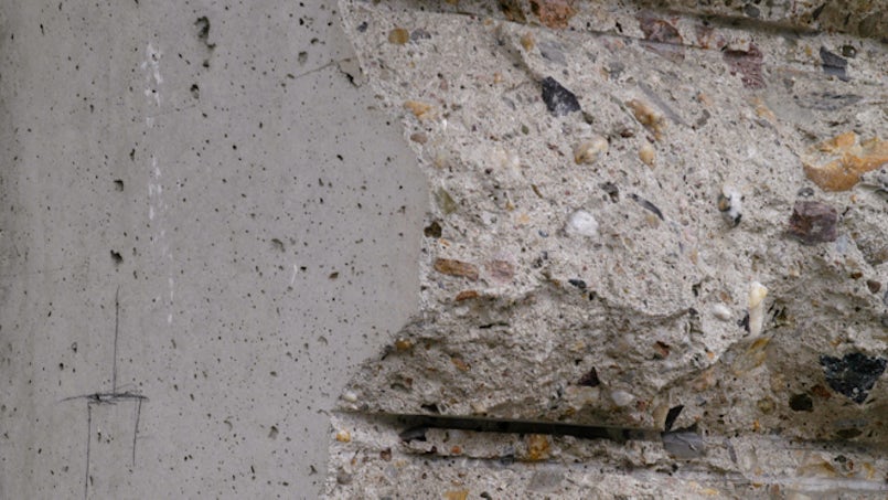 Een materiaaloppervlak is bijna altijd anders van samenstelling en structuur dan de kern van het materiaal. Het materiaal heeft als het ware een huid. De huid van beton wordt gevormd door de fijnste delen van de mengselsamenstelling: dat is het cement, of na verharding de cementsteen. De grovere delen, zand en grind, zitten meer in de kern.
