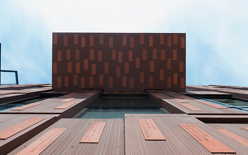 De diepte in de geprefabriceerde betonelementen, met verticale belijning en verspringende reliëfvlakken, geeft een levendig gevelbeeld. De identiteit van De Verkenner wordt gegeven door de 13 000 in het beton geïntegreerde, keramische tegels in een afwijkende, oranjerode kleur. Beeldend kunstenaar Milou van Ham heeft, in samenwerking met dichter Tsead Bruinja, 16 verschillende tegels ontworpen met ieder een dichtregel. Koninklijke Tichelaar Makkum heeft ze op ambachtelijke wijze vervaardigd en de letters erin gewalst. Vervolgens zijn de tegels ‘at random’ over de gevel verdeeld. Nu kunnen bewoners, bezoekers en voorbijgangers de gevel letterlijk lezen. De regels zijn per stuk, los van de andere tegels, te lezen. Gezamenlijk vormen ze een variërend en spannend geheel.