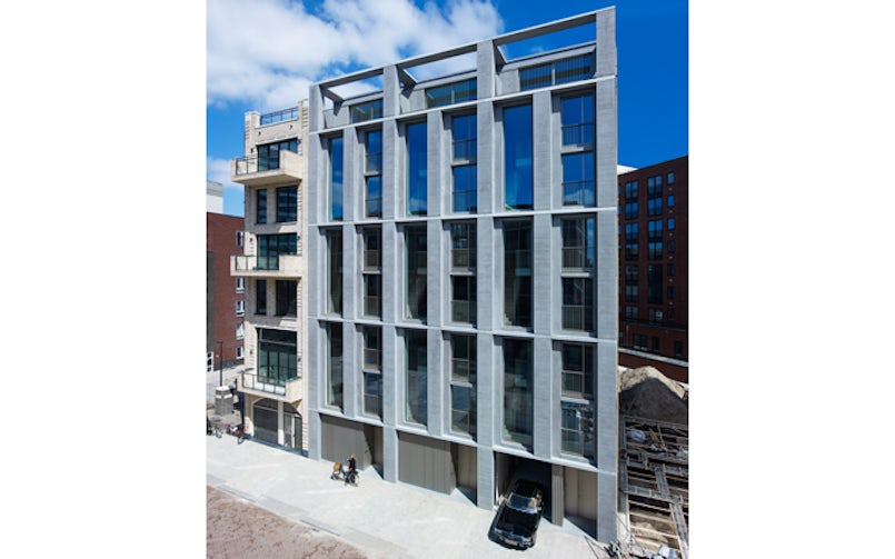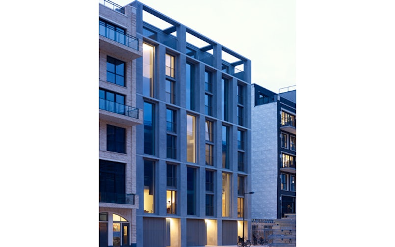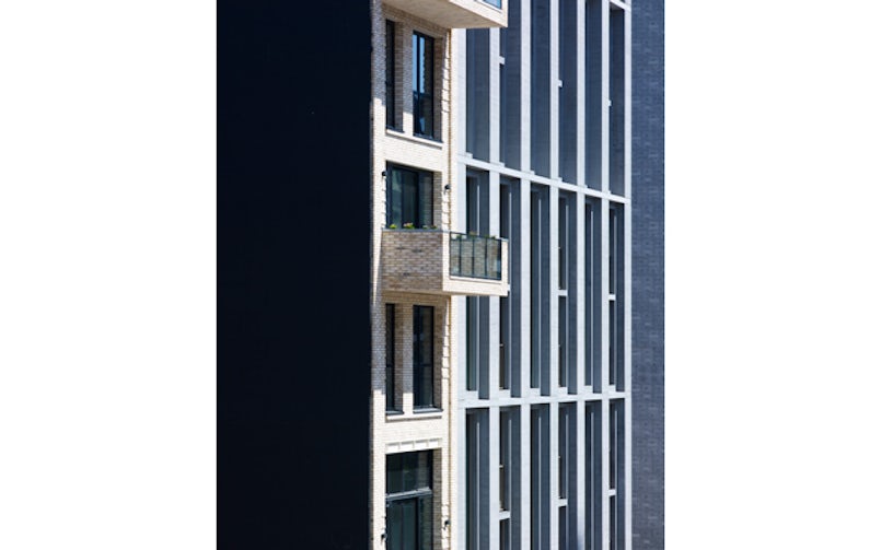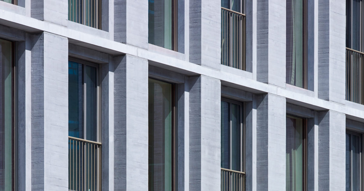 Architectonisch beton voert de boventoon in het aanzicht van Vertical Lofts, een bijzonder particulier wooncomplex in het Amsterdamse Amstelkwartier. Een bewuste keuze, want de scherpe, ritmische belijning die het gevelbeeld van dit project zo kenmerkt kun je volgens projectarchitect Jeroen Steenvoorden (studio PROTOTYPE) ‘nooit realiseren met metselwerk’.