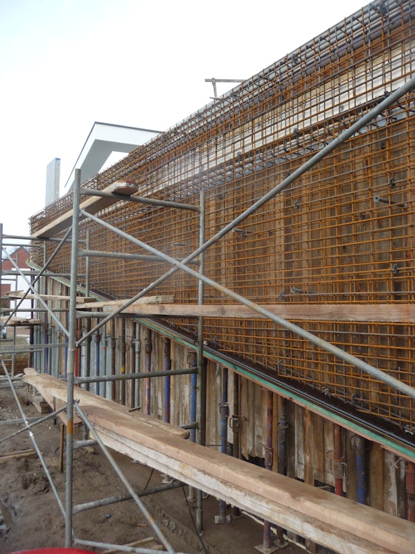 De buitenconstructie is eerst gerealiseerd, vervolgens zijn de ramen winddicht geplaatst, en tenslotte is van binnenuit isolatie aangebracht tegen de betonconstructie. De raamkozijnen zijn 16 cm diep (blokramen) en die ruimte is aan de binnenzijde benut voor de isolatie en om te pleisteren.