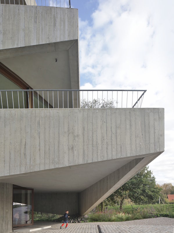 Een opeenstapeling van driehoekige terrassen bepaalt deze betonnen woning in Mechelen (B) (foto: Filip Dujardin)