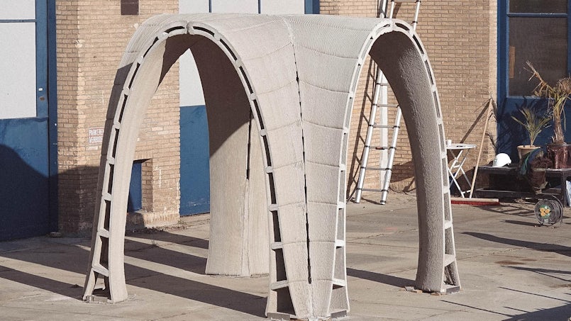Mariana Popescu van de TU Delft zet haar onderzoek bij Block Research Group van ETH Zürich voort bij de TU Delft. Zij specialiseerde zich in gebreide textielgevormde betonobjecten. Voor bijzondere boogconstructies in beton is vaak veel bekistings- en ondersteuningsmateriaal nodig. Een industrieel gebreide textiele bekistingsvorm kan voor een heel paviljoen in twee koffers vervoerd worden. De tijdelijke ondersteuning bestaat uit standaard stempels, de grootste krachten worden door het gebreide technische textiel en door de gekozen efficiënte vorm opgevangen. Bonus is de uitgesproken esthetiek die zij etaleerde met de paviljoens KnitNervi en KnitCandela.