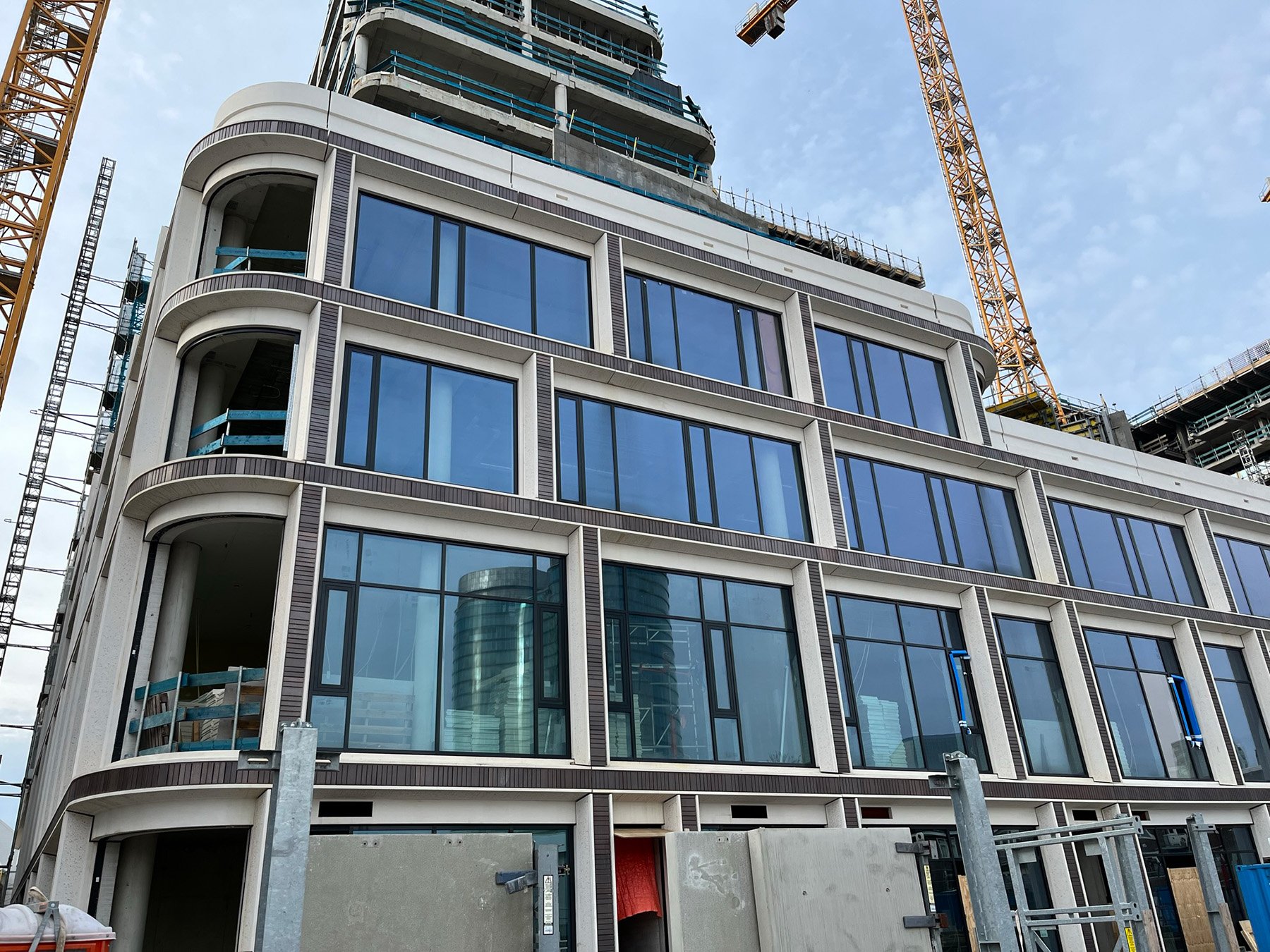 Vanaf de zesde verdieping wisselt de bouwmethodiek: de woonlagen zijn in het werk gestort, met breedplaatvloeren en massieve wanden die bijdragen aan akoestisch comfort. Op diezelfde verdieping is ook de enige overdrachtsconstructie gemaakt: een compacte door projectpartners genoemde ‘zwevende fundering’ die de overgang tussen kantoren en woningen opvangt.